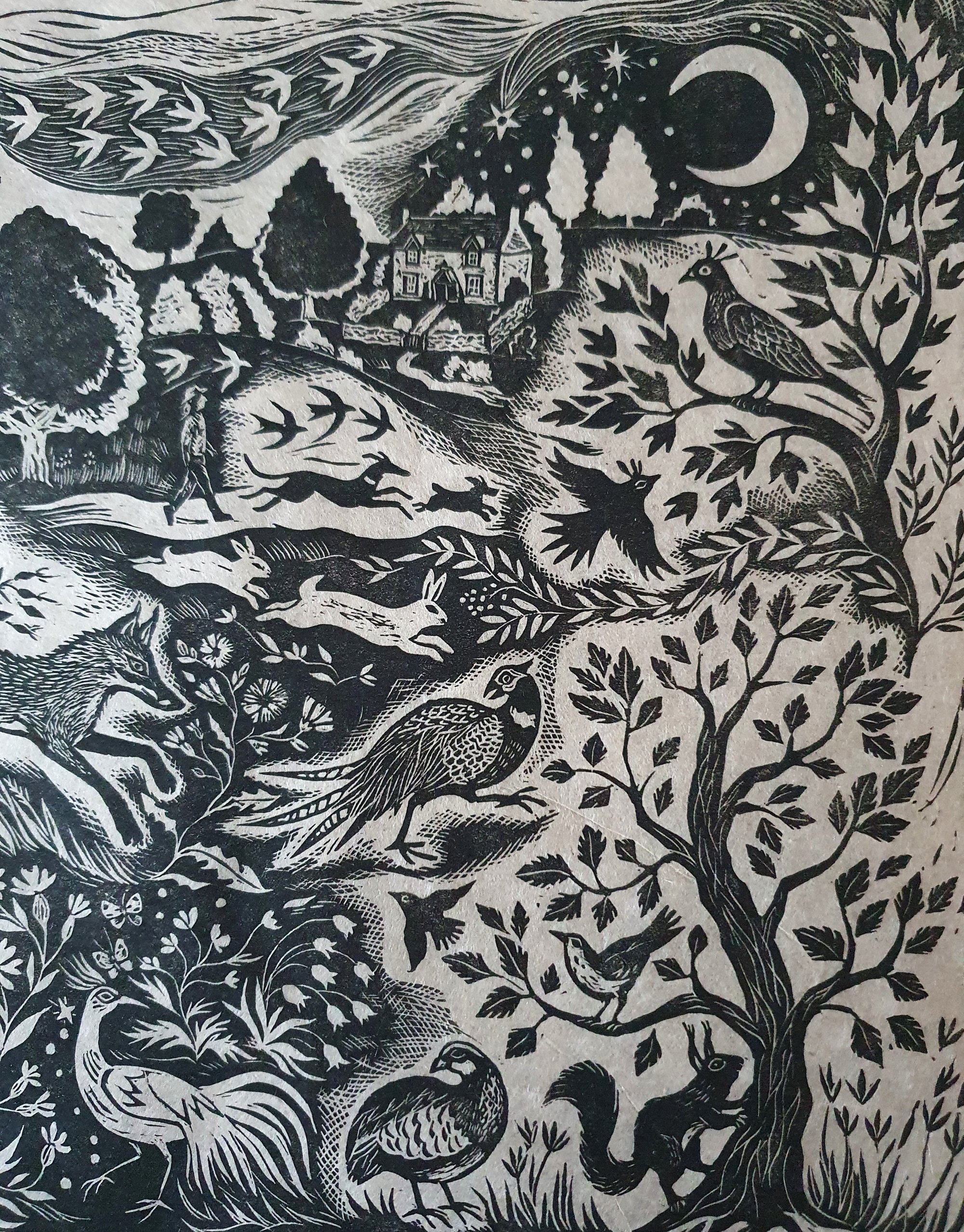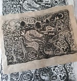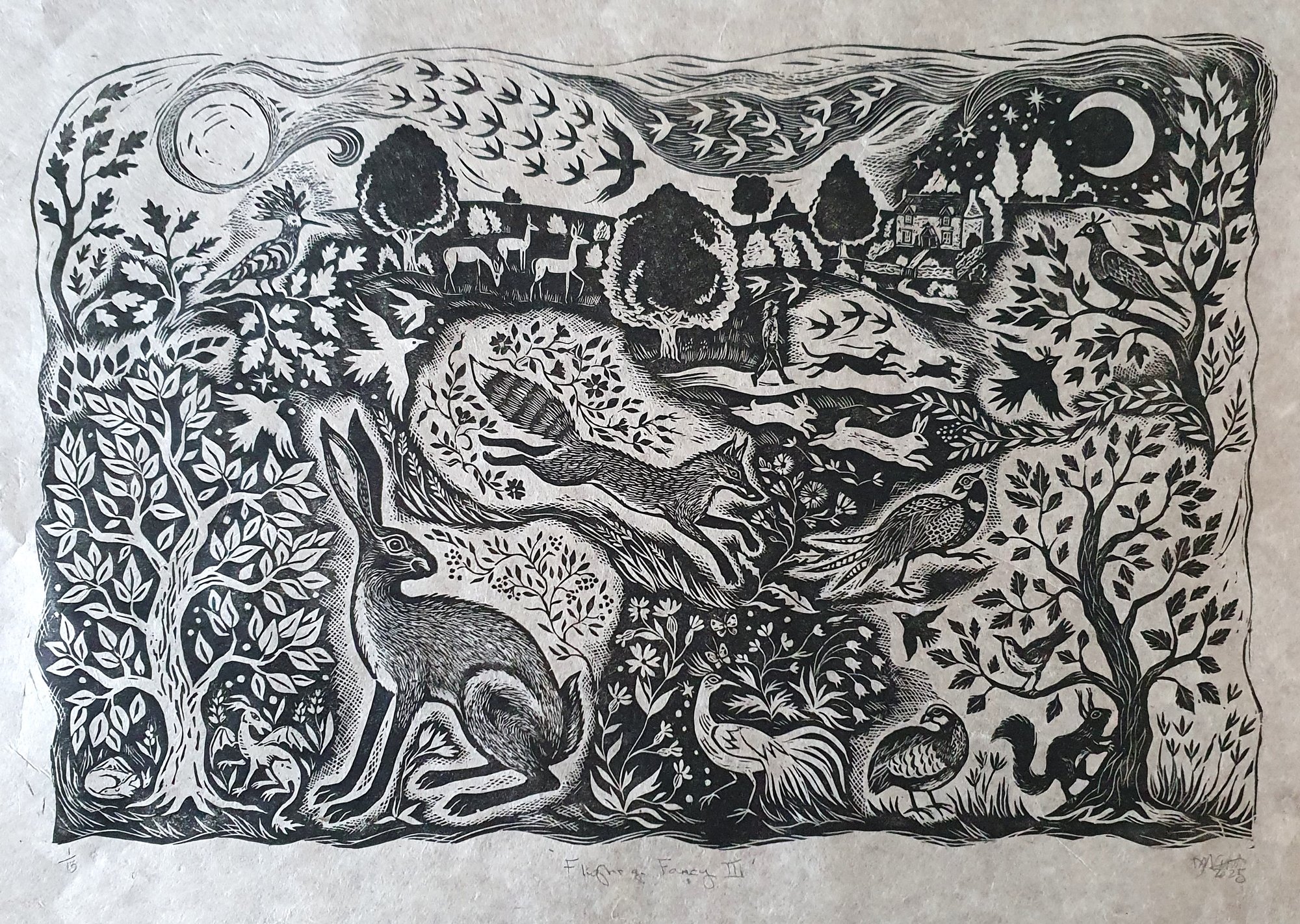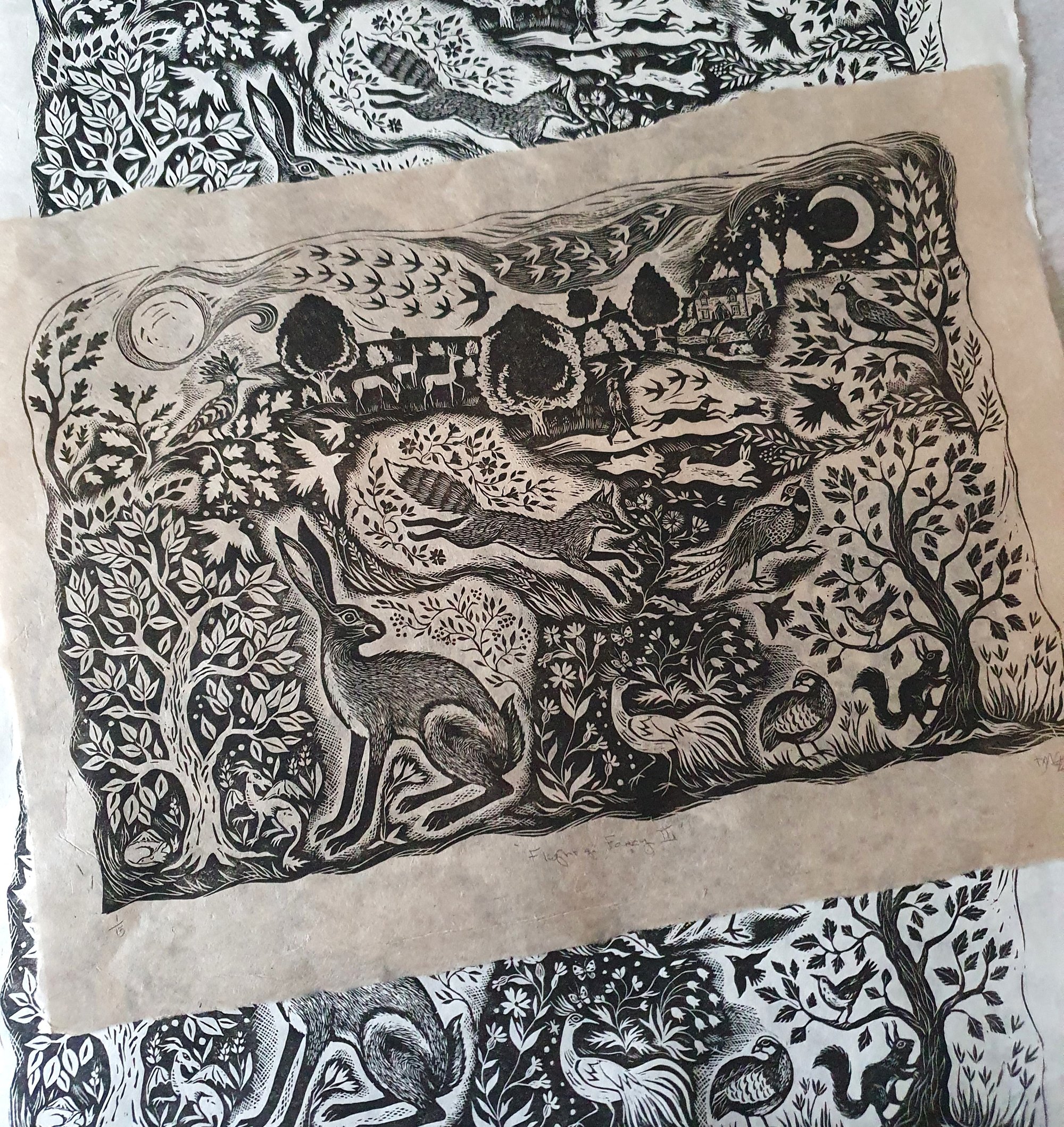 Original limited edition linocut print. A variation printed on Nepalese natural lokta.